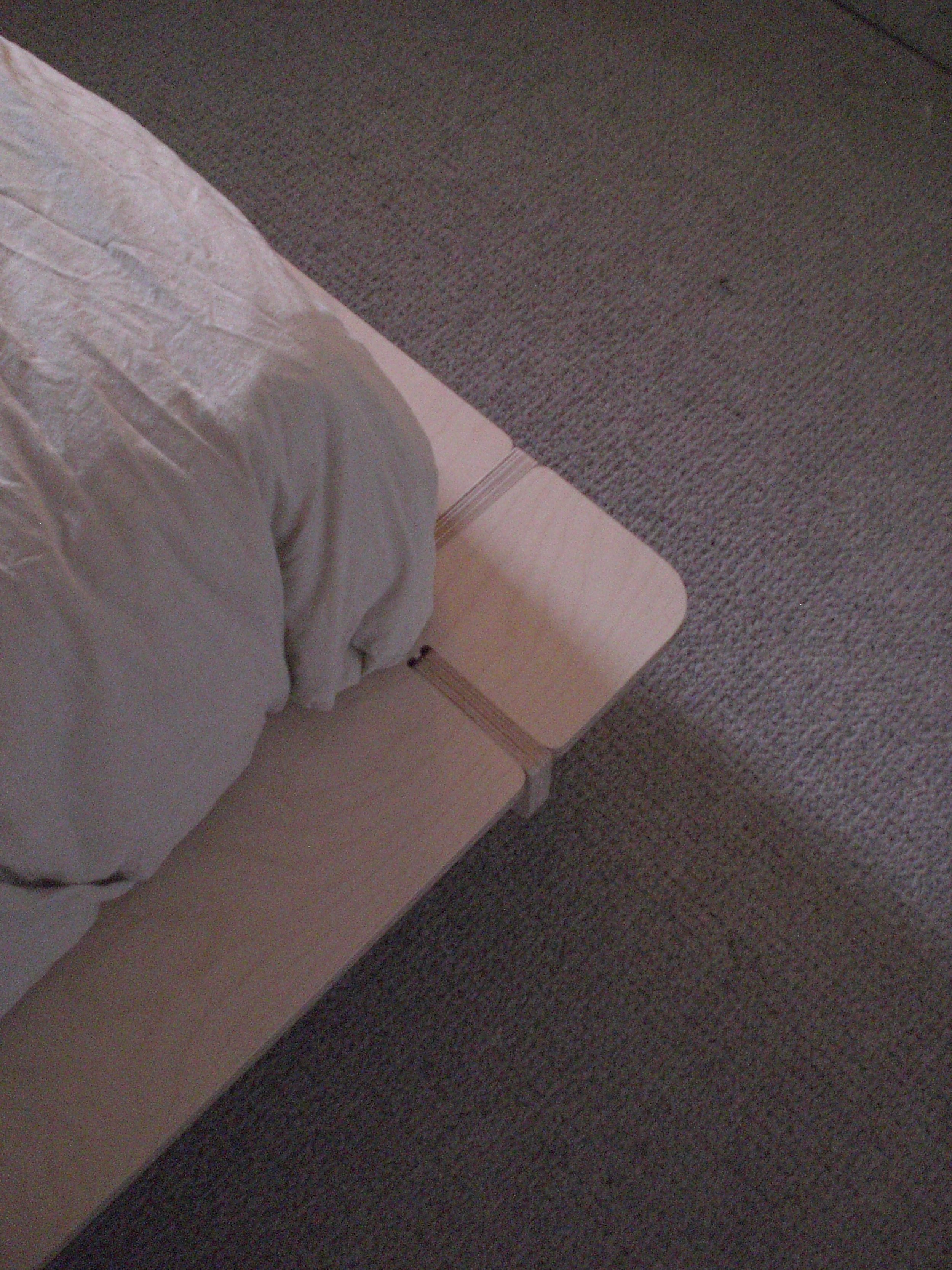 By rounding the corners and recessing the feet there is less chance of bumping into the bedframe.