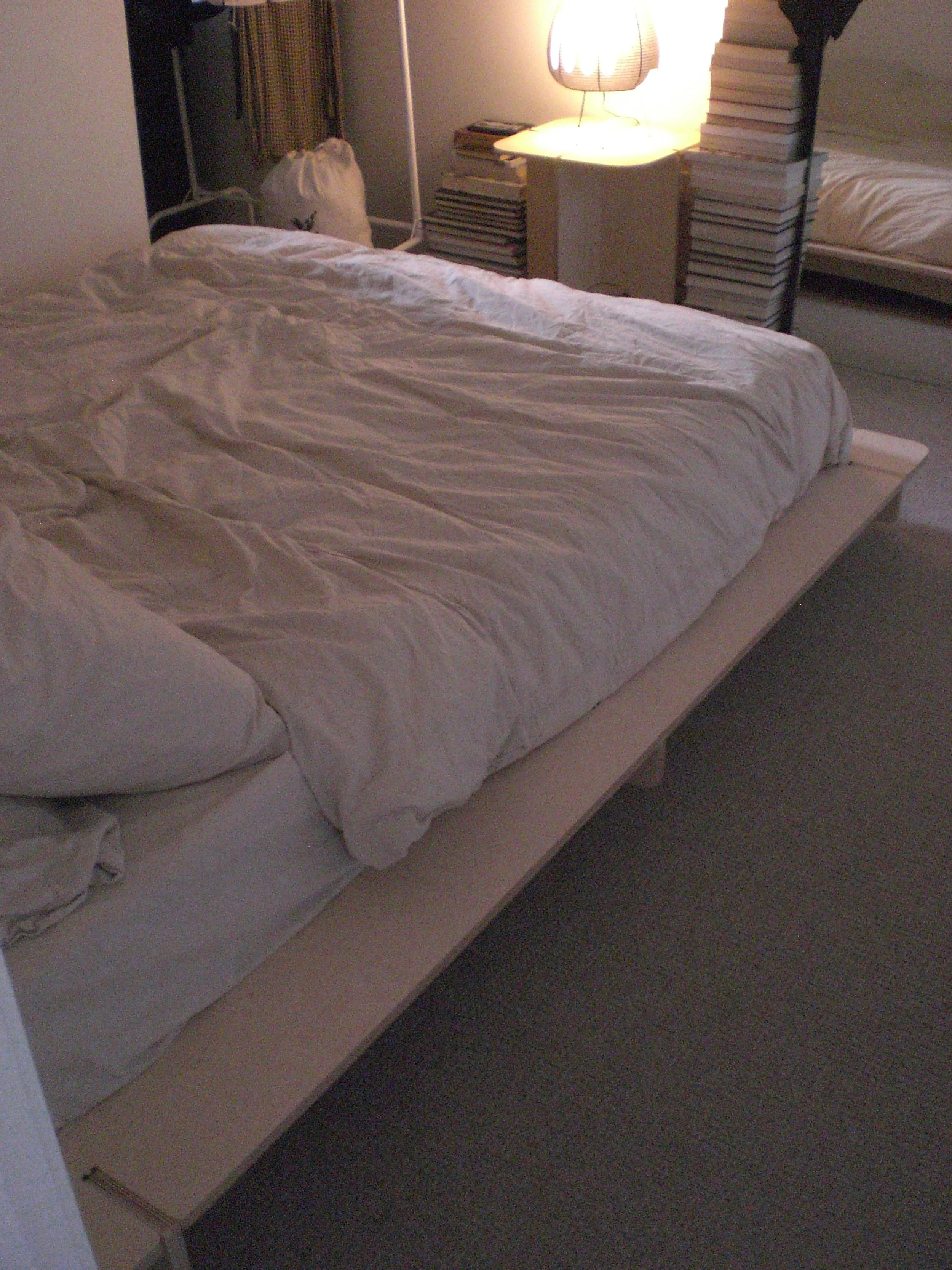 The platform protrudes out 10cm past the mattress, leaving a spot for books, phones and glasses to be placed bedside.