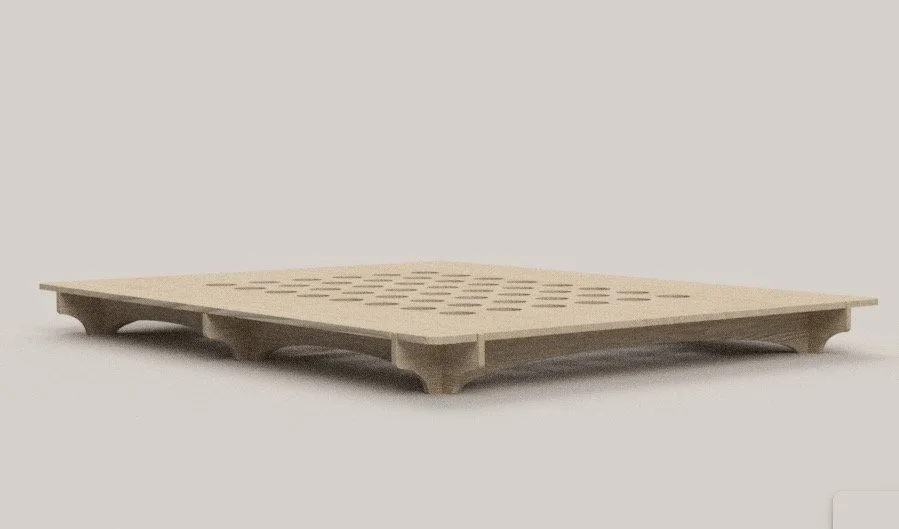 The CNC cut plywood combines modern fabrication techniques with traditional carpentry techniques.